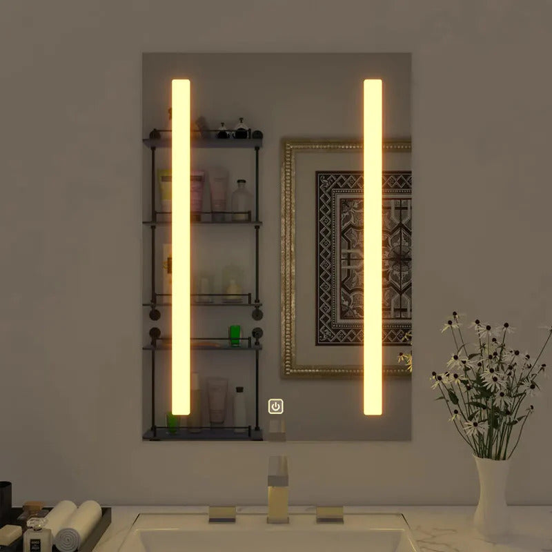 bathroom. Two detached smart touch buttons are to control the LED lights and anti-fog of the mirror. This mirror is made of copper-free & environmentally friendly materials, which are corrosion free and makes the mirror more durable. | Square/Round Lighted Sikri Modern Wall Mirror LED Bathroom Mirror, Anti-Fog Touch Switch Smart Makeup Vanity Mirror w/ 6500K High Lumen Lights.